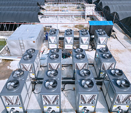 养殖场为了鳗鱼更好的增产,采用了中广欧特斯25匹机12台,其中4台用于4320㎡的恒温水池,保证稳定量鱼苗的快速生长,其中8台机组用于1100㎡水池的直接加热,保障鱼苗突增时需要的快速水池升温。