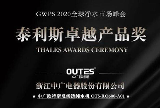 中广欧特斯纯水机荣获净水行业“泰利斯卓越产品奖”