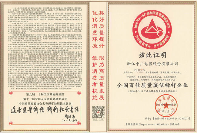 中广欧特斯连获“全国产品和服务质量诚信示范企业”等六项殊荣